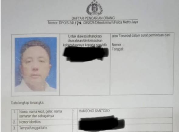 Setelah berusaha menghindari kejaran polisi, Haksono akhirnya berhasil ditangkap pada Selasa malam. “Benar, ditahan,” ujar Kabid Humas Polda Metro Jaya, Kombes Ade Ary Syam Indardi, ketika dikonfirmasi di Jakarta, Rabu (11/12/2024).