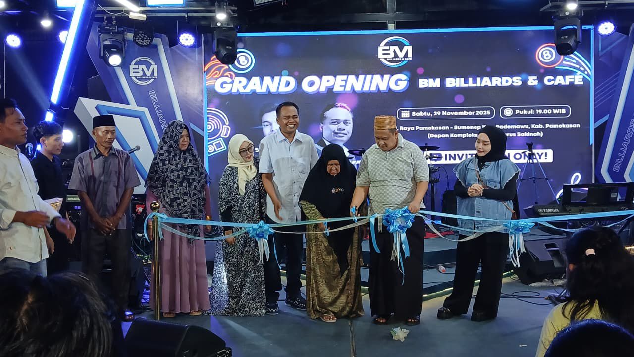 PAMEKASAN — Suasana Desa Buddagan, Kecamatan Pademawu, Sabtu (29/11/2025) malam terasa berbeda. BM Billiards & Cafe akhirnya resmi mengaspal di Jalan Raya Pamekasan, membawa visi besar untuk dunia olahraga bilyard Madura sekaligus membuka peluang kerja bagi warga lokal.