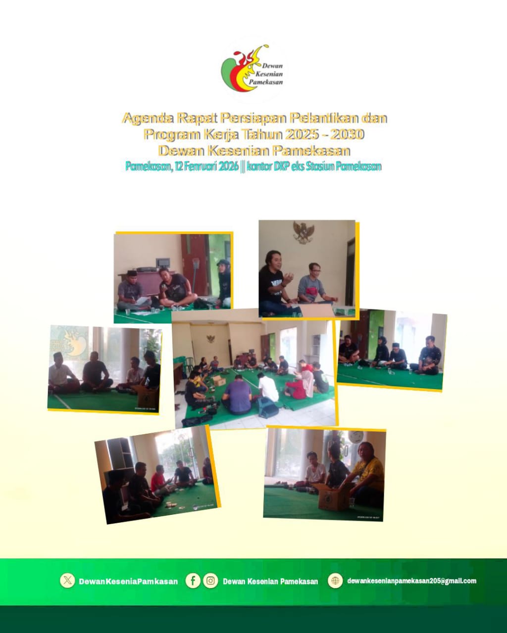 Pamekasan, DinamikaPos – Dewan Kesenian Pamekasan (DKP), pada hari kamis sore, (12/01/2026), mengadakan Agenda rapat koordinasi pertama antara pengurus harian bersama bidang – bidang untuk mempersiapkan Agenda pelantikan dan program kerja tahun 2025 – 2030.